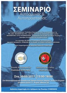 Η Ένωση Αστυνομικών Υπαλλήλων Βορειοανατολικής Αττικής (Ε.ΑΣ.Υ.Β/Α.Α.) σε συνεργασία με την HELLENIC SEISHINRYOKU RYU, υπό την εποπτεία της παγκόσμιας ομοσπονδίας SEISHINRYOKU JUTSU INTERNATIONAL, διοργανώνει για τα Μέλη της τρίωρο δωρεάν Σεμινάριο Αυτοάμυνας - Αυτοπροστασίας το Σάββατο 20 Μαΐου 2017 και ώρες 15:00 έως 18:00, στο Ελληνοαμερικάνικο Εκπαιδευτικό Ίδρυμα Κολλέγιο Αθηνών - Κολλέγιο Ψυχικού (Στεφάνου Δέλτα 15- Ψυχικό, αίθουσα 2Α).