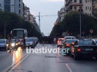 Σε εξέλιξη βρίσκεται η πορεία των αντιεξουσιαστών για την επέτειο του θανάτου του Παύλου Φύσσα, στο κέντρο της Θεσσαλονίκης.