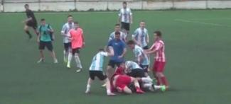 Τότε, το γήπεδο μετατράπηκε σε ρινγκ με τους ποδοσφαιριστές να ανταλλάσσουν μπουνιές και κλωτσιές χωρίς κανείς να μπορεί να τους σταματήσει.
