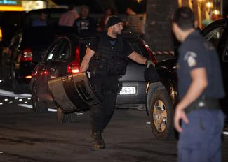 Ωστόσο, ο συναγερμός κινητοποίησε άμεσα τις Ειδικές Δυνάμεις της ΕΛ.ΑΣ. που έφτασαν στο κεντρικό ξενοδοχείο και καταδίωξαν τους ληστές, οι οποίοι προσπάθησαν να σπάσουν τον κλοιό πυροβολώντας επανειλημμένα εναντίον τους με τα Καλάσνικοφ. Η ανταλλαγή πυροβολισμών έγινε μπροστά σε δεκάδες έντρομους τουρίστες και παιδιά που συμμετείχαν στη μαθητική εκδήλωση στο χώρο του μπαρ, οι οποίοι προσπαθούσαν να καλυφθούν όπου έβρισκαν!