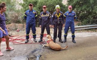 Τυχερός μέσα στην ατυχία του ο σκύλος της φωτογραφίας που βρέθηκε στον γκρεμό και σώθηκε μετά από επιχείρηση της 7ης ΕΜΑΚ.