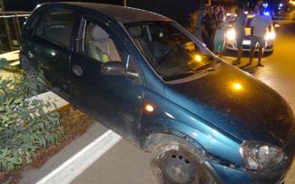 Το όχημα που οδηγούσε μια κοπέλα εξετράπη της πορείας του και «καβάλησε» τις προστατευτικές μπάρες όταν πετάχτηκε στη μέση του δρόμου ένας σκύλος και εκείνη προσπάθησε να τον αποφύγει.