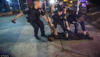 Η αστυνομία της Βαλτιμόρης έκανε πολλές προσαγωγές χτες, μερικά λεπτά αφότου τέθηκε σε ισχύ η απαγόρευση της κυκλοφορίας, συμπεριλαμβανομένου και ενός άνδρα που ψεκάστηκε με σπρέι πιπεριού και σύρθηκε στο δρόμο, πριν του περάσουν χειροπέδες.