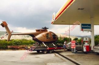 Ξαφνικά, είδαν μπροστά τους ένα φτηνό αυτοκίνητο με κατεύθυνση προς Θεσσαλονίκη, να σταματάει για να "φουλάρει" με βενζίνη. Και όλα θα ήταν συνηθισμένα αν... το αυτοκίνητο δεν έσερνε πίσω του ένα ελικόπτερο!
