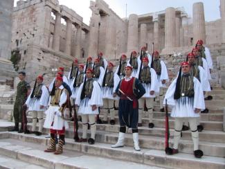 Όλοι έχουν δει τους Εύζωνες σε υπηρεσία στο Μνημείο του Αγνώστου Στρατιώτη κάτω από τη Βουλή. Φρουρά έχουν και το Προεδρικό Μέγαρο και η κεντρική πύλη του στρατοπέδου. Υπάρχουν όμως γηγενείς Αθηναίοι που δεν γνωρίζουν ότι κάθε Κυριακή πρωί οι Εύζωνες κάνουν παρέλαση από το στρατόπεδο έως τον Άγνωστο Στρατιώτη. Ή ότι κάνουν έπαρση και υποστολή της σημαίας στον Ιερό Βράχο της Ακρόπολης, Κυριακές και επίσημες αργίες. Αντίθετα, τα τουριστικά πρακτορεία είναι απολύτως ενημερωμένα και φροντίζουν να εντάσσουν στα τουριστικά τους πακέτα την ευζωνική παρέλαση. Είναι η δεύτερη μέρα του ρεπορτάζ μας. Είναι Κυριακή και έχουμε επιστρέψει στο στρατόπεδο.