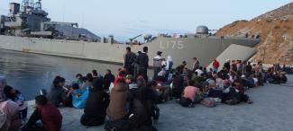 Στο λιμάνι της Ελευσίνας έφτασε λίγο μετά τις 7:30 το πρωί, αρματαγωγό το οποίο μετέφερε 389 μετανάστες, αυτή τη φορά από το νησί της Σύμης.