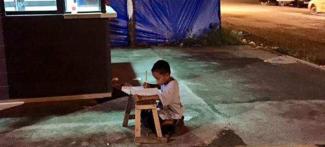 Η φωτογραφία του 8χρονου αγοριού που κάθεται σε ένα αυτοσχέδιο θρανίο και διαβάζει υπό το φως των Mc Donald's κάνει το γύρω του κόσμου και προκαλεί συγκίνηση.