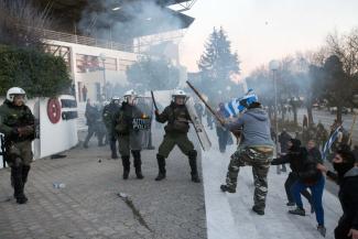 Στο σημείο επικράτησε ένταση και οι αστυνομικές δυνάμεις έκαναν χρήση χημικών, προκειμένου να απωθήσουν τους αγρότες-διαδηλωτές.