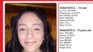Συναγερμός έχει σημάνει στις Αρχές για την εξαφάνιση της 15χρονης Παναγιώτας Σ. από το Κορωπί.