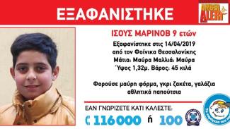 "Στις 14/4/2019, στις 08:00 ώρα, εξαφανίστηκε από τον Φοίνικα Θεσσαλονίκης, ο Ισούς (ον) Μαρίνοβ (επ), 9 ετών .