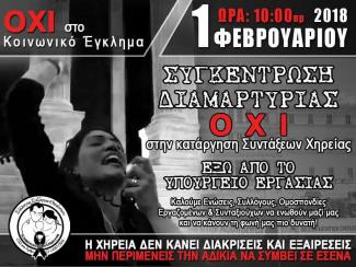 Το Διοικητικό Συμβούλιο του Συλλόγου Συζύγων Θανόντων ΑΞ.Ι.Α [Αξιοπρέπεια – Ισότητα – Αλληλεγγύη], διαπιστώνοντας ότι δεν υπάρχει καμία σοβαρή εξέλιξη επί του θέματος των Συντάξεων Χηρείας, αποφάσισε να πραγματοποιήσει νέα Συγκέντρωση Διαμαρτυρίας έξω από το Υπουργείο Εργασίας την 1η Φεβρουαρίου 2018, ημέρα Πέμπτη και ώρα 10:00.