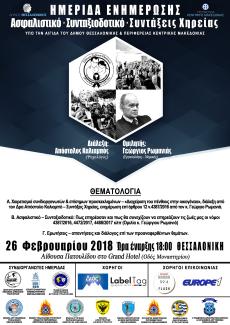Η πρόεδρος και το ΔΣ του Συλλόγου Συζύγων Θανόντων ΑΞ.Ι.Α [Αξιοπρέπεια – Ισότητα – Αλληλεγγύη], σας προσκαλεί στην εκδήλωση – ημερίδα που θα πραγματοποιηθεί στην «Αίθουσα Πατουλίδου» στο GrandHotel, την 26η Φεβρουαρίου 2018, ημέρα Δευτέρα και ώρα 18:00, υπό την αιγίδα της Περιφέρειας Κεντρικής Μακεδονίας και του Δήμου Θεσσαλονίκης, με κεντρικό ομιλητή τον εργατολόγο – νομικό κ. Γεώργιο Ρωμανιά με θεματολογία, όπως παρακάτω: