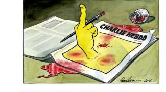 Λίγη ώρα μετά την άνανδρη εκτέλεση συνολικά δώδεκα ανθρώπων, σκιτσογράφοι από όλο τον κόσμο δημοσίευσαν στο twitter σκίτσα για να καυτηριάσουν, να σχολιάσουν, να εκφράσουν την αλληλεγγύη, να υπερασπιστούν την ελευθερία του τύπου και να καταδικάσουν την επίθεση των δύο δολοφόνων που, όπως αναφέρουν μάρτυρες, φώναξαν «ο Αλλάχ είναι μεγάλος» λίγο πριν σκοτώσουν δώδεκα ανθρώπους.