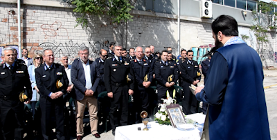 Το τρισάγιο στη μνήμη του Αρχιπυροσβέστη Σπυρόπουλου Πέτρου τέλεσε ο Αρχιμανδρίτης του Ι.Ν. Αγίων Κωνσταντίνου και Ελένης στο Μοσχάτο, π. Παρθένιος Αμανατίδης.