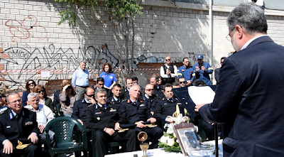 Στη σύντομη ομιλία του ο Διοικητής ΔΙ.Π.Υ. Πειραιά, Αρχιπύραρχος Ιωάννης Σταμούλης, εξήρε το ήθος του αδικοχαμένου Αρχιπυροσβέστη και την αυτοθυσία του, αφού σε ηλικία μόλις 26 ετών, έχασε τη ζωή στην ώρα του καθήκοντος.