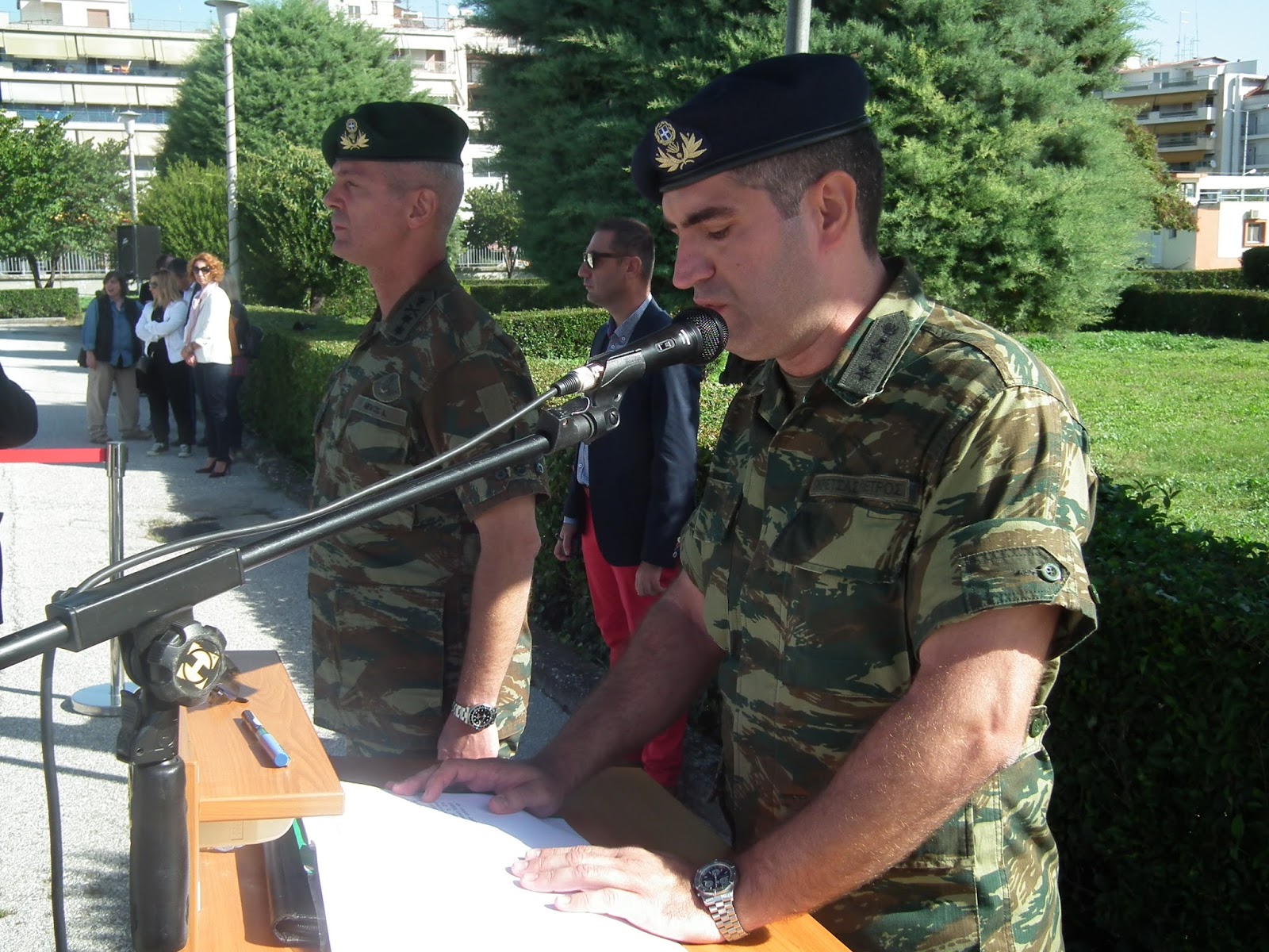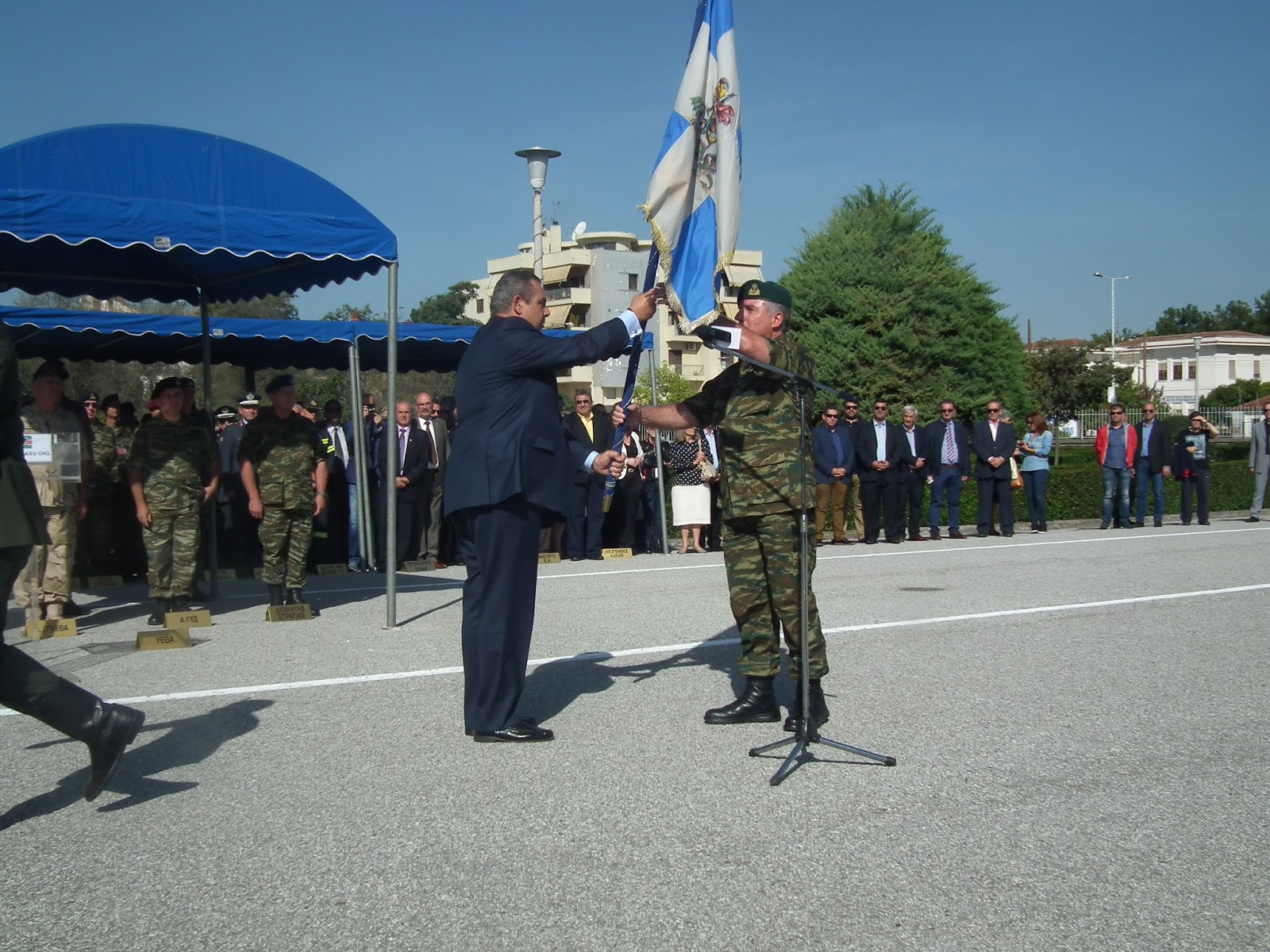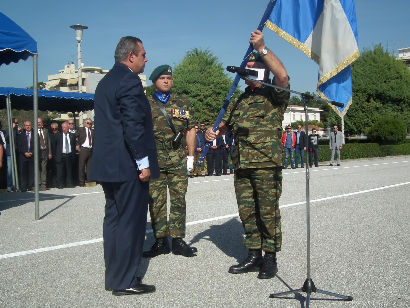 Ο Υπουργός Εθνικής Άμυνας Πάνος Καμμένος, συνοδευόμενος από τον Αρχηγό ΓΕΕΘΑ Ναύαρχο Ευάγγελο Αποστολάκη ΠΝ και τον Αρχηγό ΓΕΣ Αντιστράτηγο Βασίλειο Τελλίδη, επισκέφθηκε τη Λάρισα, όπου παρέστη στην Τελετή Παράδοσης Πολεμικών Σημαιών στις Ι ΜΠ - ΙΙ Μ / Κ ΜΠ - VIII M / Π TAΞ - Χ ΣΠ - 1ο - 2ο ΤΕΕΠ της 1ης Στρατιάς.