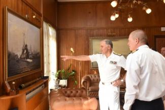 Μετά από αυτό το σύντομο μάθημα Ελληνικής Ναυτικής Ιστορίας, οι δύο Αρχηγοί συζήτησαν θέματα αμοιβαίου ενδιαφέροντος, που σχετίζονται με θέματα κοινών ασκήσεων και εκπαιδεύσεως του προσωπικού. Ο Αρχηγός Στόλου του Πολεμικού Ναυτικού του Ισραήλ επισκέπτεται την Ελλάδα ως επικεφαλής αντιπροσωπείας στο πλαίσιο διμερών συνομιλιών επιπέδου ΓΕΝ, ενώ σήμερα Πέμπτη 15 Σεπτεμβρίου, η Ισραηλινή αντιπροσωπεία θα επισκεφθεί το Αρχηγείο Στόλου στη Σαλαμίνα και τη Διοίκηση Ναυτικής Εκπαιδεύσεως.