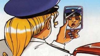Mία ξανθιά οδηγεί το αυτοκίνητό της και την σταματάει μία τροχονόμος, επίσης ξανθιά.