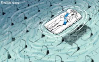 Με το σκίτσο αυτό, με την υπογραφή Ricardo, που δημοσιεύει η ισπανική εφημερίδα El Mundo αφήνει την εικόνα να «πει» χίλιες λέξεις για τις ναυτικές τραγωδίες που μετατρέπουν τη Μεσόγειο σε υγρό τάφο αλλά και για τις κατηγορίες προς την ΕΕ πως «κλείνει τα μάτια» στο δράμα των προσφύγων.