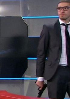 Ντυμένος με μαύρο κουστούμι, λευκό πουκάμισο και σκούρα γραβάτα, ο δράστης μπήκε στο κτίριο της τηλεόρασης κρατώντας κάτι που έμοιαζε με πιστόλι με σιγαστήρα. Απείλησε έναν φύλακα ασφαλείας και ζήτησε να τον πάνε στο στούντιο των ειδήσεων των 20:00 γιατί είχε να κάνει αποκαλύψεις "παγκοσμίου ενδιαφέροντος". Τον οδήγησαν όμως σε ένα άλλο πλατό, όπου τον βιντεοσκόπησαν, ενώ ταυτόχρονα το υπόλοιπο κτίριο εκκενωνόταν. Ο νεαρός κράτησε όμηρο, για λίγα λεπτά, έναν εργαζόμενο στο κανάλι.