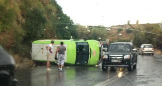 Ευτυχώς, ούτε ο οδηγός τραυματίστηκε ούτε προκλήθηκε άλλο τροχαίο με διερχόμενο αυτοκίνητο μετά την ανατροπή του μικρού φορτηγού που έκλεισε το δρόμο.