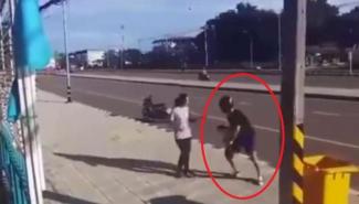 Το περιστατικό συνέβη στην Κίνα. Μια ανυποψίαστη γυναίκα περπατάει αμέριμνη στο πεζοδρόμιο. Είναι μέρα μεσημέρι. Ένας τσαντάκιας με ένα σκουτεράκι την εντοπίζει από μακριά.