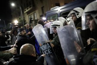 Οι διαδηλωτές αποδοκίμασαν άτομα που έσπευσαν να δουν την παράσταση και φώναξαν συνθήματα, ενώ ήρθαν στα χέρια με τις αστυνομικές δυνάμεις που προσπαθούσαν να τους απωθήσουν. Ακολούθησαν τρεις προσαγωγές και ολιγόλεπτος αποκλεισμός από τους διαδηλωτές του ενός ρεύματος της Λεωφόρου Νίκης, μπροστά από τον Λευκό Πύργο.