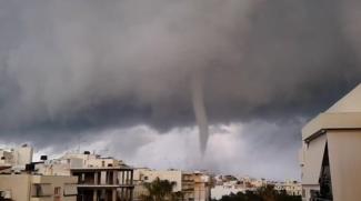 Ο υδροστρόβιλος που έκανε την εμφάνισή του σε απόσταση αναπνοής από το λιμάνι, ήταν ορατός ακόμα και μέσα από την πόλη του Ηρακλείου.