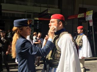 Ομογενείς φώναζαν «ζήτω η Ελλάς», «γεια σας λεβέντες μας», βλέποντας τους εύζωνες να περνούν από μπροστά τους, ενώ δεν ήταν λίγοι οι τουρίστες που προσπάθησαν να βγάλουν κάποια φωτογραφία ή που ζητούσαν να μάθουν περισσότερα για τους άνδρες της προεδρικής φρουράς και για την ενδυμασία τους.