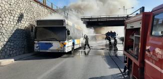 Φωτιά ξέσπασε το απόγευμα του Σαββάτου σε λεωφορείο του ΟΑΣΑ, στην άνοδο της Εθνικής Αθηνών-Λαμίας, στο ύψος της Νέας Φιλαδέλφειας.