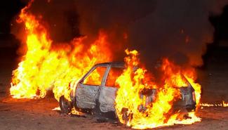 Από τη φωτιά που προκλήθηκε καταστράφηκαν ολοσχερώς το αυτοκίνητο και μερικώς το δίκυκλο.