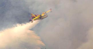 Μάχη με τις φλόγες σε δασική έκταση στο Πευκοχώρι στην Κασσάνδρα Χαλκιδικής. Στις προσπάθειες κατάσβεσης συμμετέχουν και εναέρια μέσα