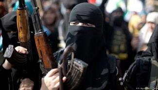 Δύο τζιχαντιστές τη σέρνουν, προς πώληση, ενώ ο τρίτος με τη ντουντούκα κάνει τη δημοπρασία. Κρατά μάλιστα και μια μαγκούρα, για να δείχνει ποιος πελάτης κάνει την καλύτερη προσφορά.