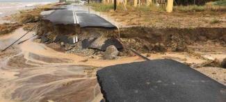 Ο δρόμος της επαρχιακής οδού Επανομής - Νέας Μηχανιώνας καθώς λόγω της κακοκαιρίας έχει «κοπεί» στα δύο όπως φαίνεται και στη φωτογραφία.