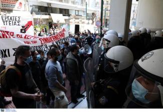 Όταν έφτασαν έξω από το υπουργείο Υγείας, οι διαδηλωτές προσπάθησαν να μπουν στο κτίριο, χτυπώντας τα ρολά, με τους άνδρες των ΜΑΤ που βρίσκονταν στο σημείο να κάνουν περιορισμένη χρήση χημικών.