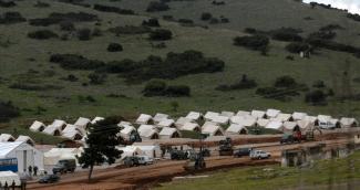 Στο στρατόπεδο ολοκληρώνεται η εγκατάσταση 300 σκηνών η χωρητικότητα των οποίων ξεπερνά τους 2.000 φιλοξενούμενους, η περίφραξη του χώρου ολοκληρώνεται, ενώ συνεργεία της ΔΕΥΑΛ εργάζονται για την τοποθέτηση δικτύου ύδρευσης.