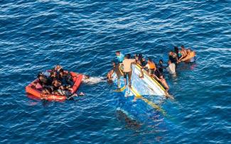 Πανικόβλητοι μετανάστες από αφρικανικές χώρες δίνουν τον ύστατο αγώνα επιβίωσης αναζητώντας ένα κομμάτι ξύλο από το βυθιζόμενο σκάφος τους για να κρατηθούν στην επιφάνεια της θάλασσας- και στη ζωή.
