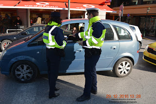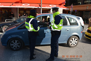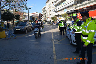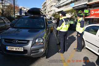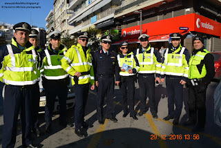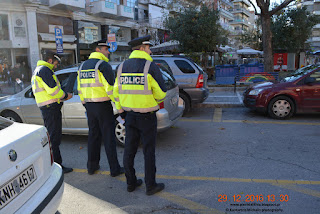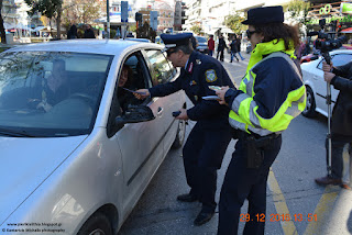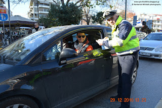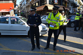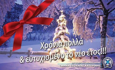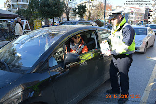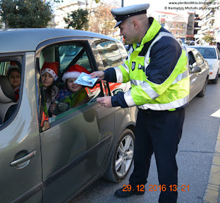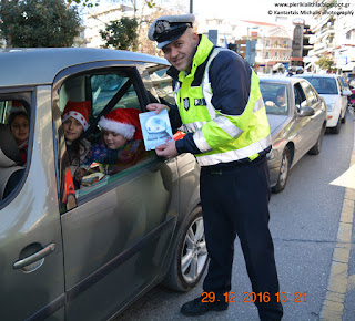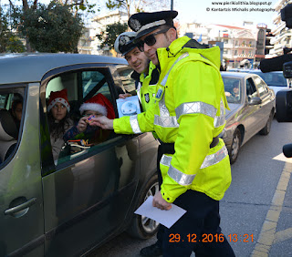 Άντρες και γυναίκες της Τροχαίας Κατερίνης μοίρασαν γλυκά και ενημερωτικά φυλλάδια στους οδηγούς στην κεντρική πλατεία Κατερίνης, παράλληλα με τις ευχές τους για καλές γιορτές και ευτυχισμένο το νέο έτος.