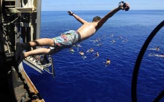 Τι στιγμή που αρκετός κόσμος δεν έχει πρόσβαση στη θάλασσα, ναύτες, πεζοναύτες και λοιπό προσωπικό ενός αμερικανικού αεροπλανοφόρου, περνούν ξέγνοιαστες στιγμές -όποτε το απαιτούν οι περιστάσεις- στις καλύτερες «πισίνες» του κόσμου.