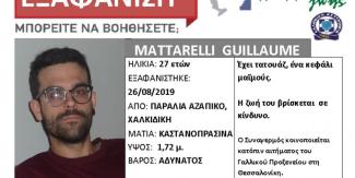 Ο 27χρονος Γκιγιόμ Ματαρελί βρισκόταν στην παραλία Αζάπικο την περασμένη Δευτέρα, όταν και συμμετείχε στο φεστιβάλ Free Earth. Εκ τότε αγνοούνται τα ίχνη του και η υπηρεσία Γραμμή Ζωής, εξέδωσε silver alert.