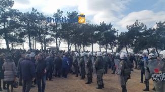 Άμεσα διμοιρίες των ΜΑΤ παράχθηκαν μπροστά τους προκειμένου να μη τους αφήσουν να προσεγγίσουν τον χώρο των εργασιών.