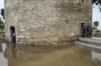 Από την ισχυρή βροχόπτωση πλημμύρισε μέχρι και ο Λευκός Πύργος με αποτέλεσμα να εγκλωβιστούν τουρίστες!