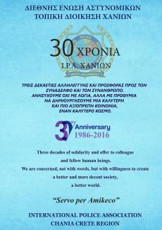 "Πέρασαν 30 χρόνια, από την ίδρυση της Τοπικής Διοίκησης Χανίων (Ι.Ρ.Α. ΧΑΝΙΩΝ) της Διεθνούς Ένωσης Αστυνομικών.