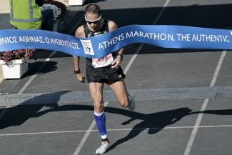 v ΠΕΖΟΙ και ΠΟΔΗΛΑΤΕΣ δεν ΕΠΙΤΡΕΠΕΤΑΙ να διασχίζουν ή να κινούνται στο οδόστρωμα κατά μήκος της Μαραθώνιας διαδρομής, κατά τις ώρες που διεξάγεται ο αγώνας.