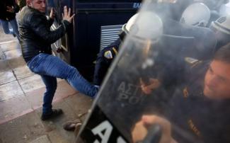 «Οταν οι διαδηλωτές εισέβαλαν στο υπουργείο επιτέθηκαν με πρωτοφανή αγριότητα εναντίον μας, χτυπώντας μας με χέρια, πόδια, ξύλα, ρόπαλα μέχρι και με κράνη μοτοσικλέτας και σέρνοντάς μας, ενώ μερικοί εξ αυτών φώναζαν συνεχώς και προέτρεπαν τους επιτιθέμενους “πατήστε τους κάτω”, “λιώστε τους”. Απαντες δεχθήκαμε επίθεση και χτυπήματα από τους διαδηλωτές, ενώ ο τρίτος από εμάς δεχόμενος σφοδρά χτυπήματα από παντού, έμεινε εντελώς μόνος και αβοήθητος. Ο δε επικεφαλής των μέτρων δεν προσπάθησε ούτε να βοηθήσει με κάποιον τρόπο στον απεγκλωβισμό μου, ούτε μεταβίβασε στο Κέντρο Επιχειρήσεων το συμβάν».