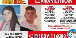 "Στις 04.05.2020, και ώρα 21:10, εξαφανίστηκαν από τα Καμίνια στον Πειραιά, ο Παρλιάρας Πάρης, 14 ετών και η Πανάγου Μαρία-Αγγελική, 13 ετών. Το «Χαμόγελο του Παιδιού» ενημερώθηκε για την εξαφάνιση των ανηλίκων σήμερα, 05.05.2020, μεσημβρινές ώρες, και προχώρησε άμεσα στην ενεργοποίηση του μηχανισμού AMBER ALERT HELLAS.