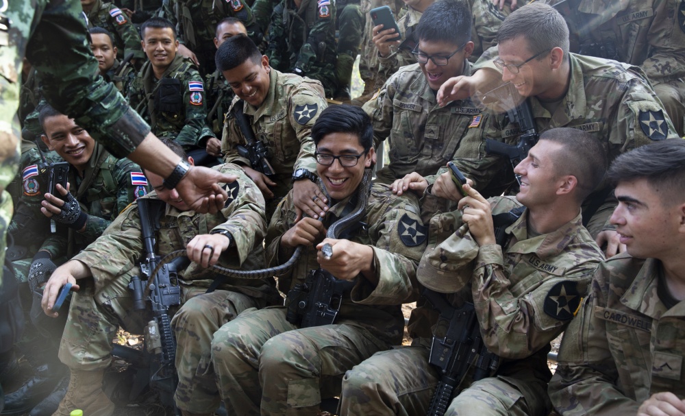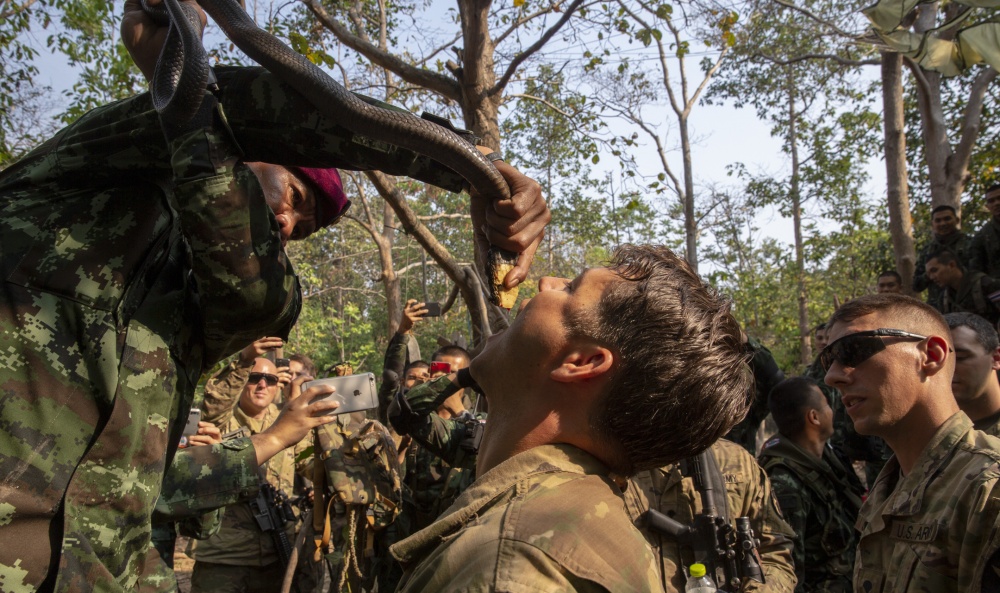 "Καλώς ήρθατε στη ζούγκλα" ήταν το μήνυμα των θα πρέπει να ήταν τα λόγια με τα οποία υποδέχθηκαν τους Αμερικανούς Πεζοναύτες οι Ταϊλανδοί συνάδελφοί τους στην εκπαίδευση επιβίωσης σε ζούγκλα κατά την διάρκεια της μεγάλης κοινής στρατιωτικής άσκησης Cobra Gold 2019, που διοργανώνουν από κοινού οι ΗΠΑ με την Ταϋλάνδη.