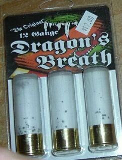 Tα Dragons Breath είναι πολύ «επικίνδυνα» φυσίγγια διαμετρήματος 12 gauge που βασίζονται σε μια πρόσμιξη ζιρκονίου, τα οποία όταν πυροδοτούνται από ένα λειόκαννο προκαλούν κάτι...σαν πυροτέχνημα σε μια απόσταση περίπου 5 μέτρων (20 πόδια) και είναι πολύ επικίνδυνα γιατί μπορεί να προκαλέσουν πολύ εύκολα εμπρησμό σε διάφορα φυσικά περιβάλλοντα.