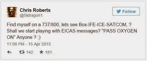 Σύμφωνα με έγγραφα, ο Chris Roberts, ερευνητής ασφαλείας με τα Εργαστήρια One World, αποκάλυψε σε πράκτορα του FBI ότι τον Φεβρουάριο είχε χακάρει το σύστημα ψυχαγωγίας των επιβατών -αποκαλείται και IFE- και στην συνέχεια έγραψε έναν κώδικα στο σύστημα διαχείρισης ώθησης του αεροσκάφους. Με αυτόν τον τρόπο κατάφερε για μικρό χρονικό διάστημα να κάνει το αεροπλάνο να γείρει προς μια πλευρά, ενώ εκείνος βρισκόταν στην καμπίνα των επιβατών. Ακόμα χρησιμοποίησε το λογισμικό Vortex για να αποκτήσει πρόσβαση για να ελέγξει την κίνηση από το σύστημα του πιλοτηρίου.