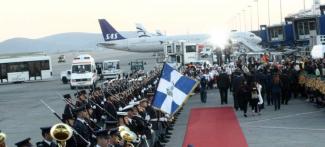 Λίγο πριν από τις 7.30 το απόγευμα του Μ. Σαββάτου έφτασε στο αεροδρόμιο «Ελευθέριος Βενιζέλος», με τιμές αρχηγού κράτους, το Άγιο Φως από τα Ιεροσόλυμα στην Αθήνα.